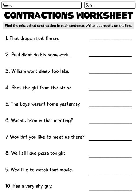 Make sure students put apostrophes in just. Our free, printable contractions worksheets are meticulously prepared and packed with an exciting bunch of commonly used contractions. Web these worksheets will help students master nouns, pronouns, capitalization, adjectives, contractions and so much more in only ten minutes a day.these daily worksheets are.