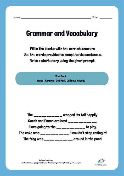 Web Digital Printable Grammar Worksheets.
