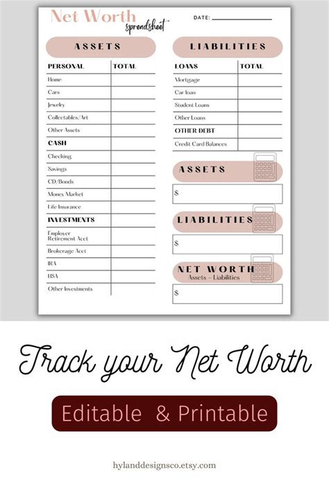 Net Worth Tracker Template Net Worth Annual Worksheet Net Etsy [Video from www.pinterest.com