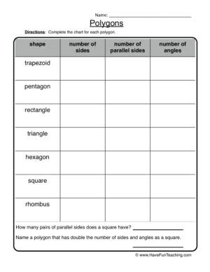 Web this math worksheet gives your child practice spotting and learning the attributes of different polygons, including parallel sides and right angles. Identifying types of angles 2. Worksheets are properties of polygons, p.