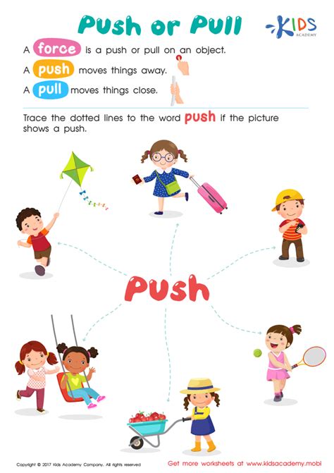 Web read each text in this pdf worksheet and identify whether the activity requires us to exert a push force or a pull force. Pull your socks up as gear up to answer our free, printable push and pull worksheets. Web this teaching presentation introduces the students to push and pull forces.