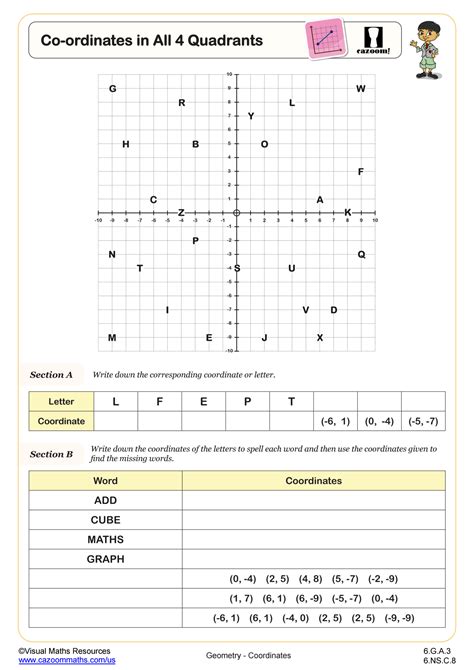 Algebra 1 > algebra 2 >. The x and y axes divide a coordinate plane into four quadrants. On this webpage you will find our range of free printable coordinates worksheets for 5th grade and aove.