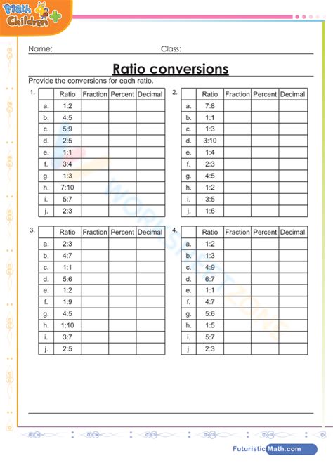 Ratio and Percent Conversions Worksheets from theeducationmonitor.com