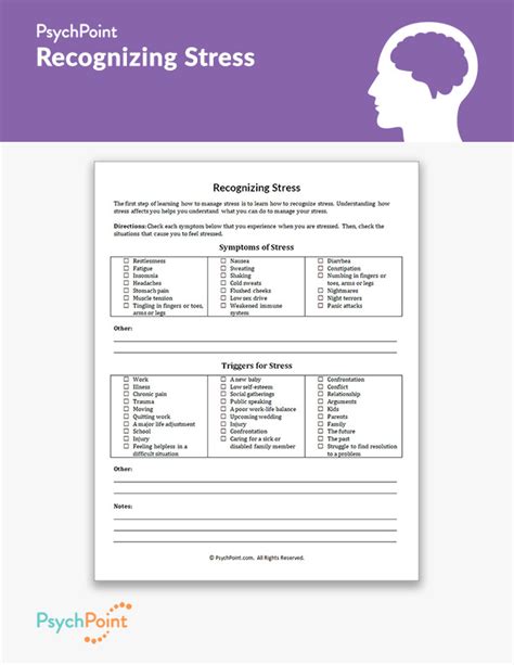 On this page, we will provide you with a recognizing stress worksheet. List things you can do to reduce the symptoms of stress. Most people who experience symptoms of.